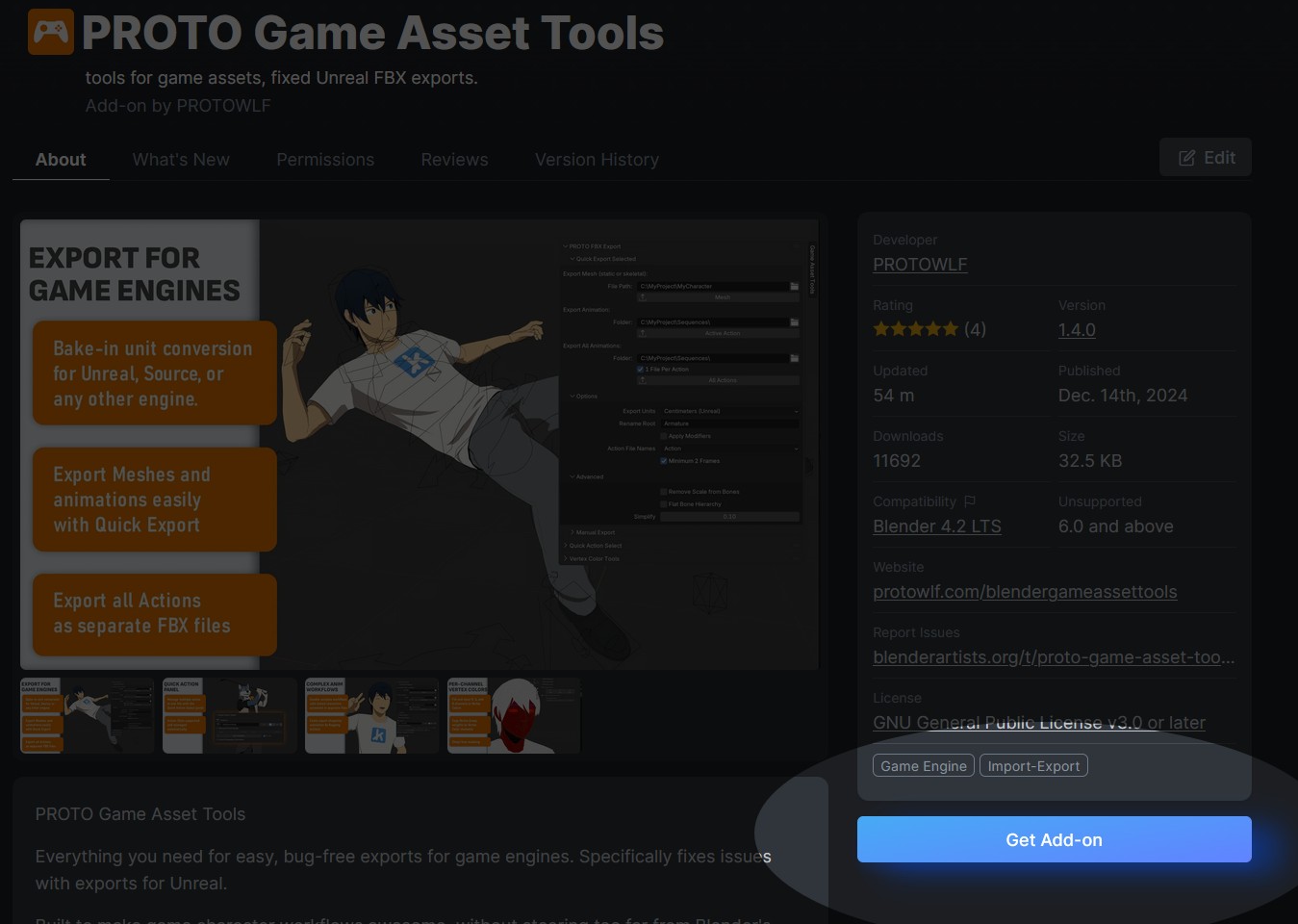 PROTO Game Asset Tools requires Blender 4.2 or newer