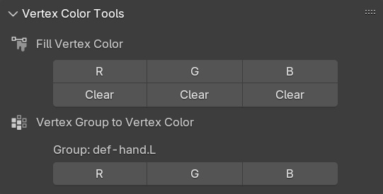 - Fill and erase Vertex Color by RGB channel (Red, Green, Blue).