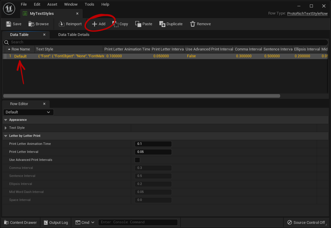 - Open your Data Table asset containing your Text Styles.