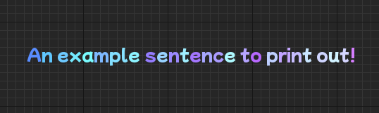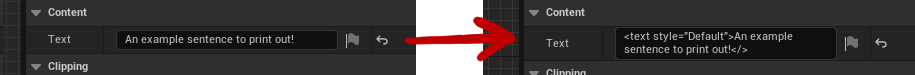 In other words, <text>An example sentence to print out!</> will produce the same result in this case.