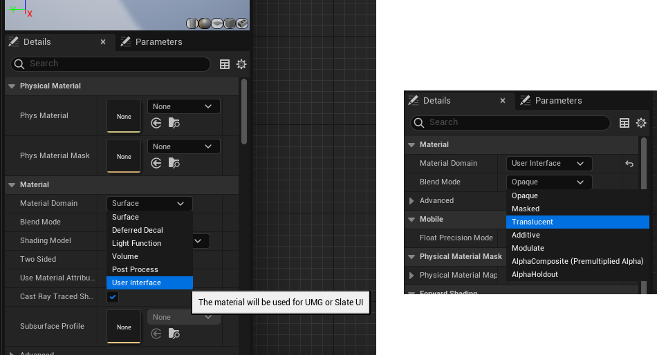 - Set the Material Domain to User Interface.