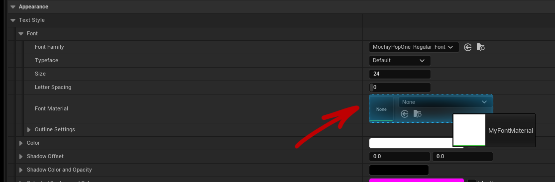 - In your Text Style, set the Font Material parameter to our new material.