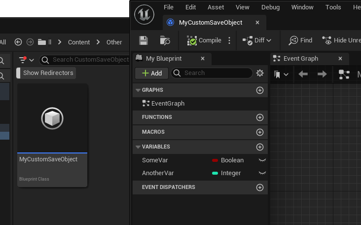 - Stick to basic types for the properties in your custom save objects (FNames, FStrings, bools, ints, floats, etc).