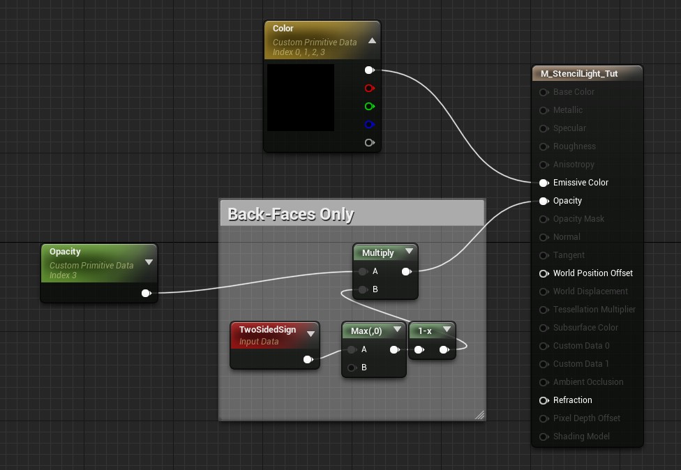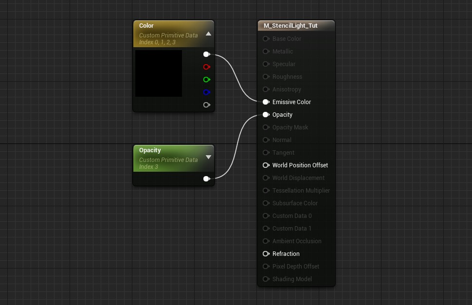 - Create a new Material, call it something like “M_StencilLight”, and apply the material to the sphere.