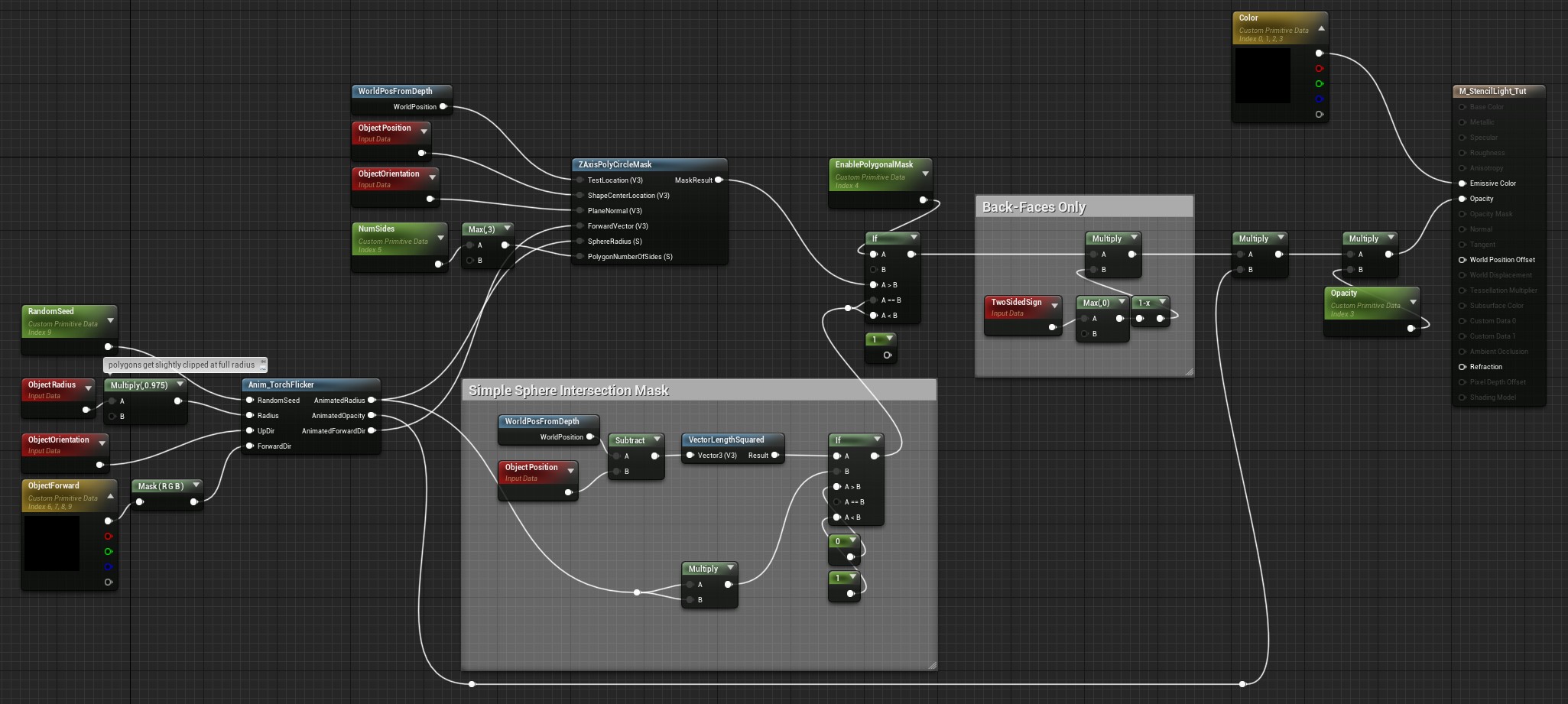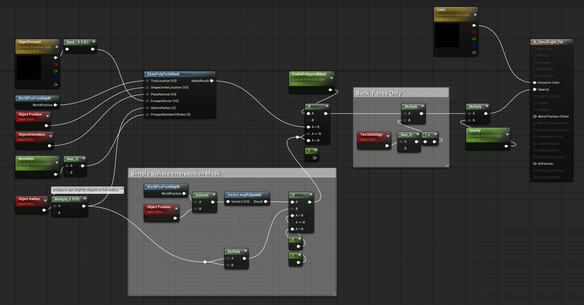 For this Unreal implementation, we will be using a different method from the classic effect. You may be tempted to use the stencil buffer and custom depth in Unreal, but they have limitations that prevent us from using them (more on this at the end). It actually won’t be a true “stencil light” at all – just styled like one!