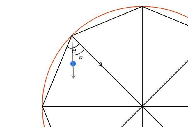 Φ requires a bit more effort to find. We’ll need to get the direction vectors of the two lines making the angle. Finding the direction of the gray line will require calculating the position of the nearest vertex. Once we have these two directions, we can calculate the angle between them, giving us Φ.