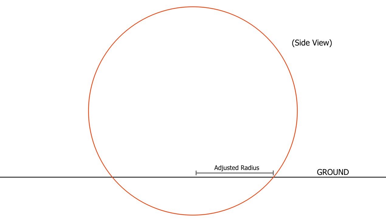 We want our polygonal mask to create visible polygons regardless of how deep the sphere is in the ground. To do this, we need to know the radius of the circle where the sphere intersects the world